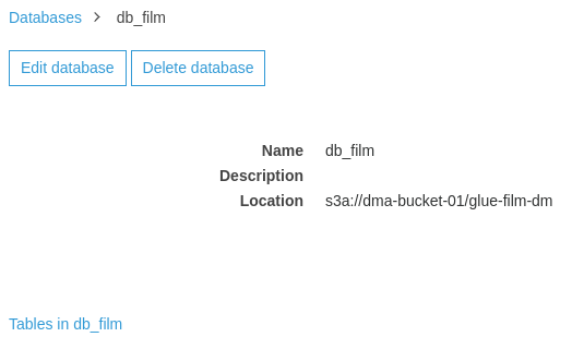 In this example, we will use the database db_film of the Glue Catalog.