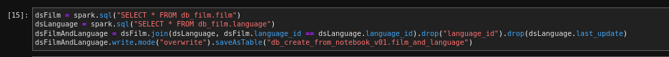 You can describe a database by running spark.sql("DESCRIBE DATABASE db_film")